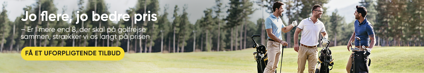 Ubegrænset golf betyder, at 5 tee times kan bookes hjemmefra. Yderligere golf skal bookes, gratis, direkte hos banen, hvor der findes ledige tider. Ubegrænset golf er inkluderet 7 dage, IKKE på afrejsedagen.