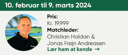- 4 træningssamlinger med demonstration af forskellige slagtyper. Gæster kan maks. vælge 1 træning om ugen. Træningsbeskrivelse og tilmelding via Golfbox.